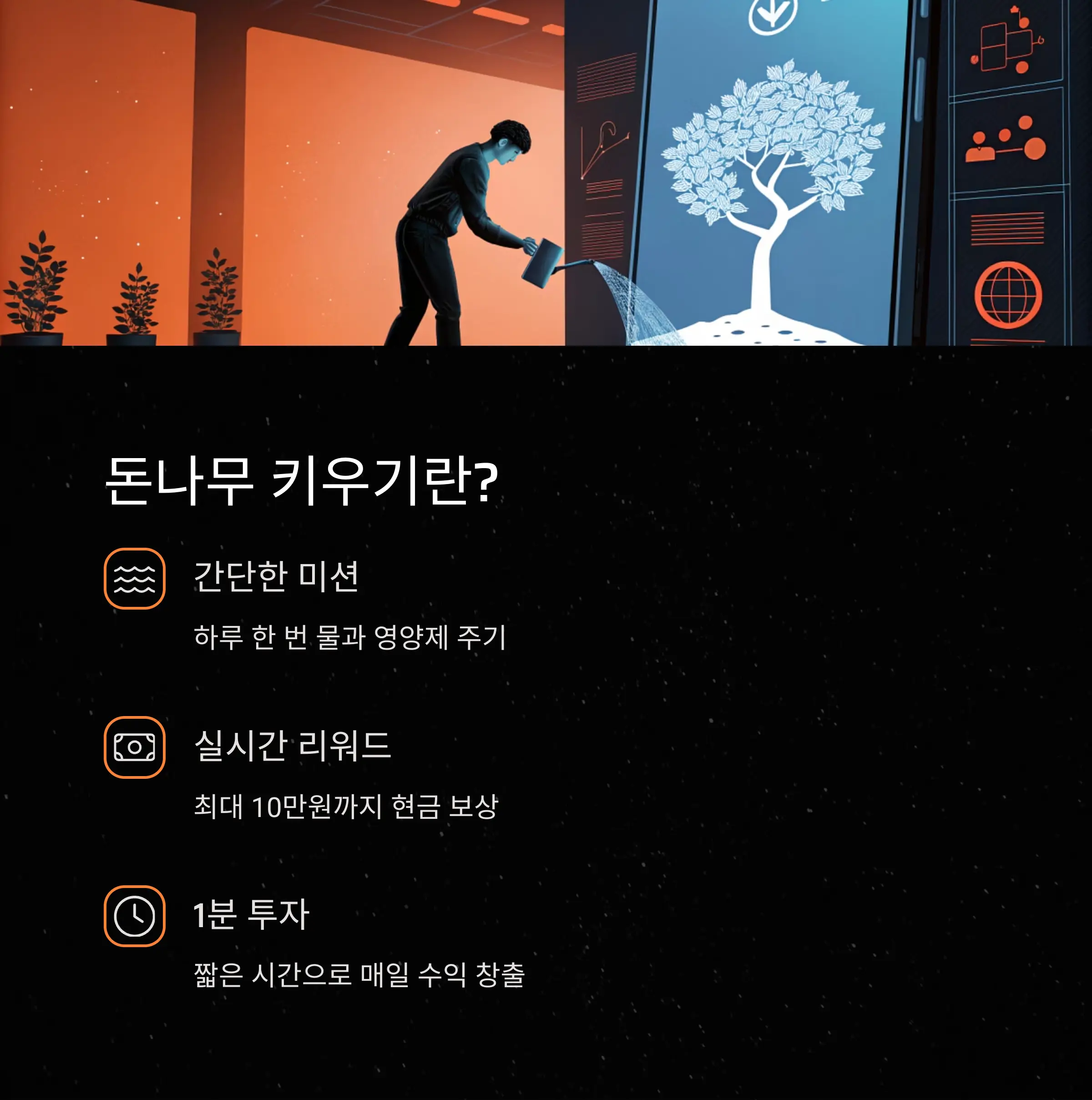 하루 1분 투자, 돈나무를 키워 리워드 받기