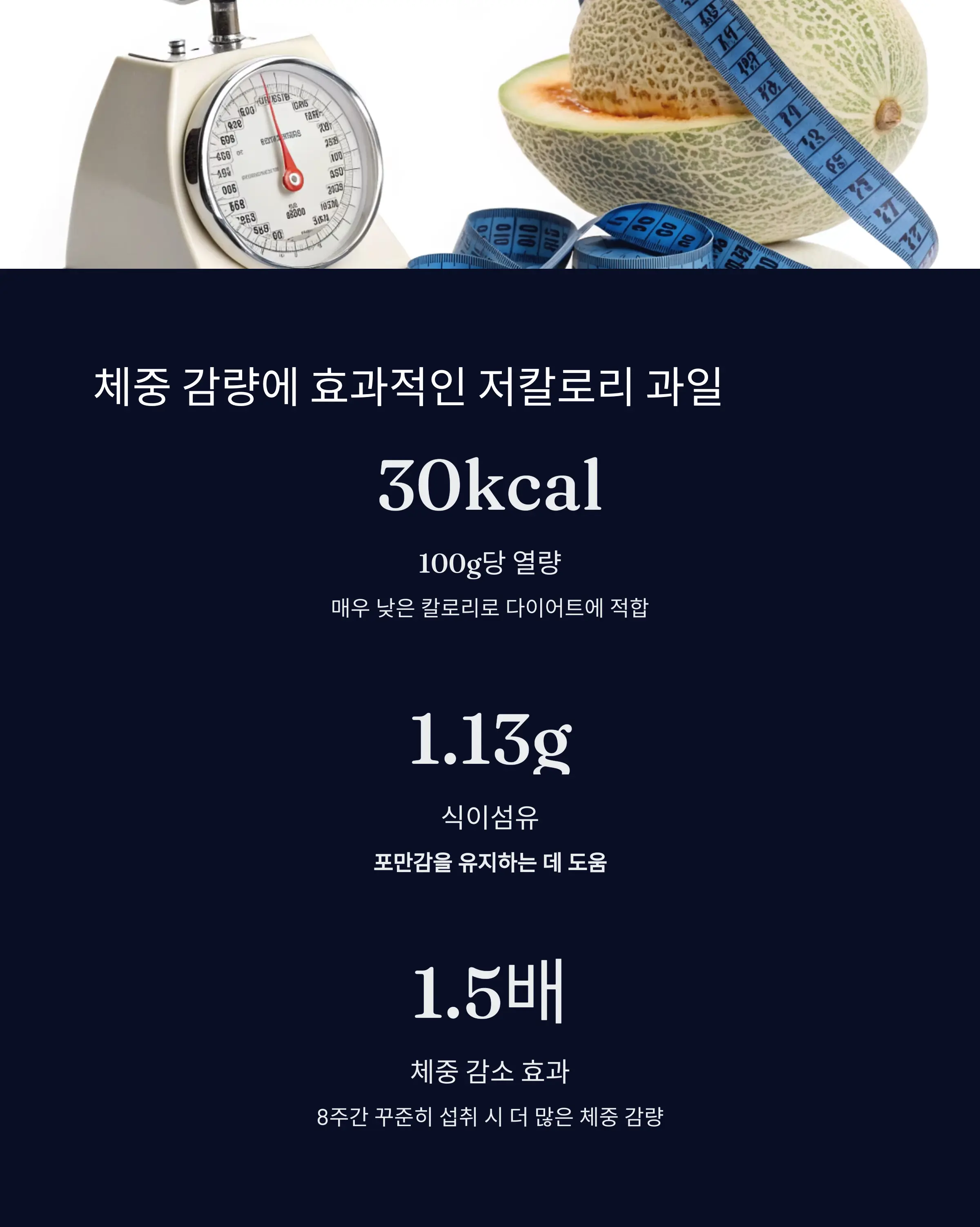 참외는 100g당 약 30kcal로 매우 낮은 열량을 자랑하면서도,
