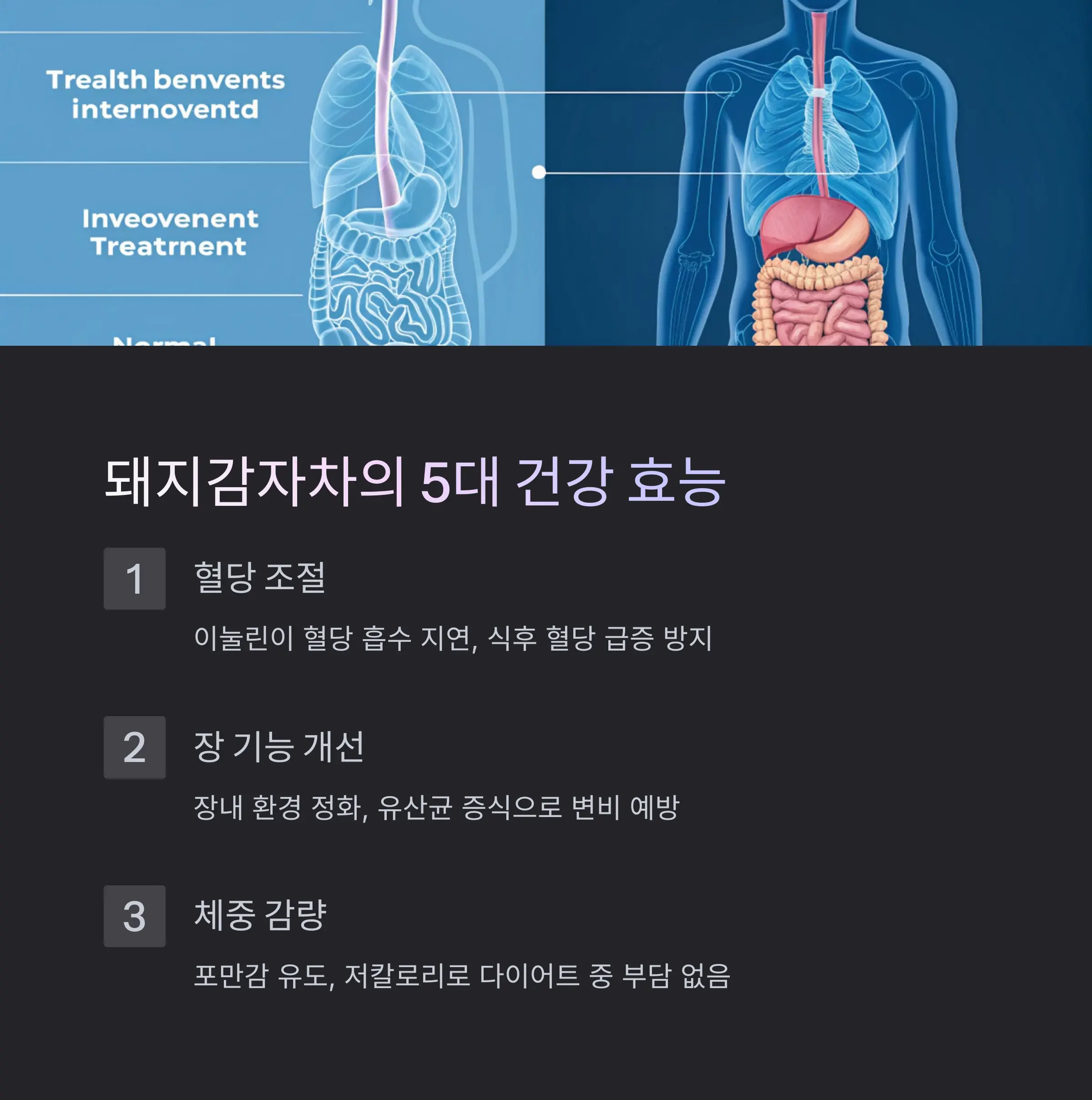 특히 식후 혈당 급증을 막는 데 탁월한 작용을 합니다. - 장 기능 개선